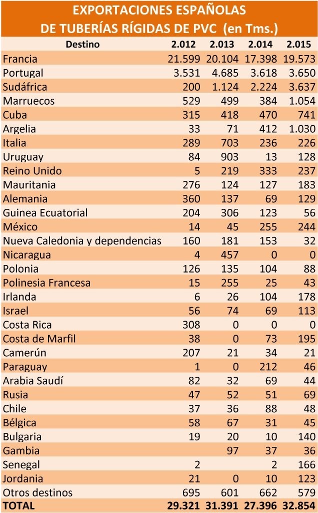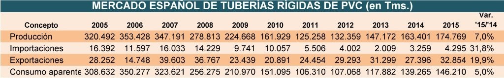 El mercado espaol de tubos rgidos de PVC creci ms en volumen, que en valor, en 2015