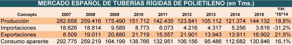 El mercado espaol de tubos rgidos de polietileno continu creciendo con fuerza en 2015 por segundo ...