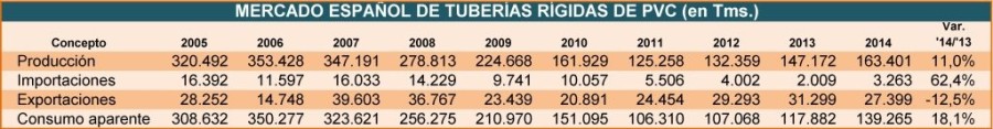 El mercado espaol de tubos rgidos de PVC prosigui recuperndose en 2014 del desmoronamiento ...