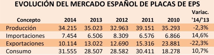 Tras el crecimiento del mercado espaol en 2014, el consumo de planchas de poliestireno expandido ...