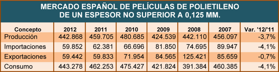 El consumo de film de polietileno se redujo en España un 4,1% en 2012