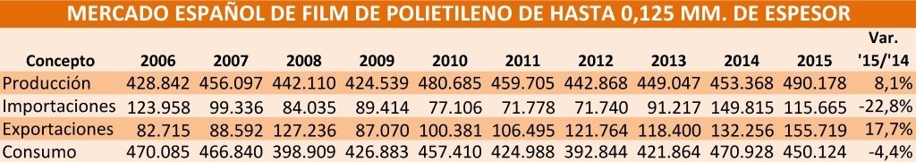 Martes, 20 de septiembre de 2016 | El consumo en España de láminas de polietileno de hasta 0,125 mm. de espesor no estuvo a la altura del comportamiento de su producción, que en 2015 batió su récord ...