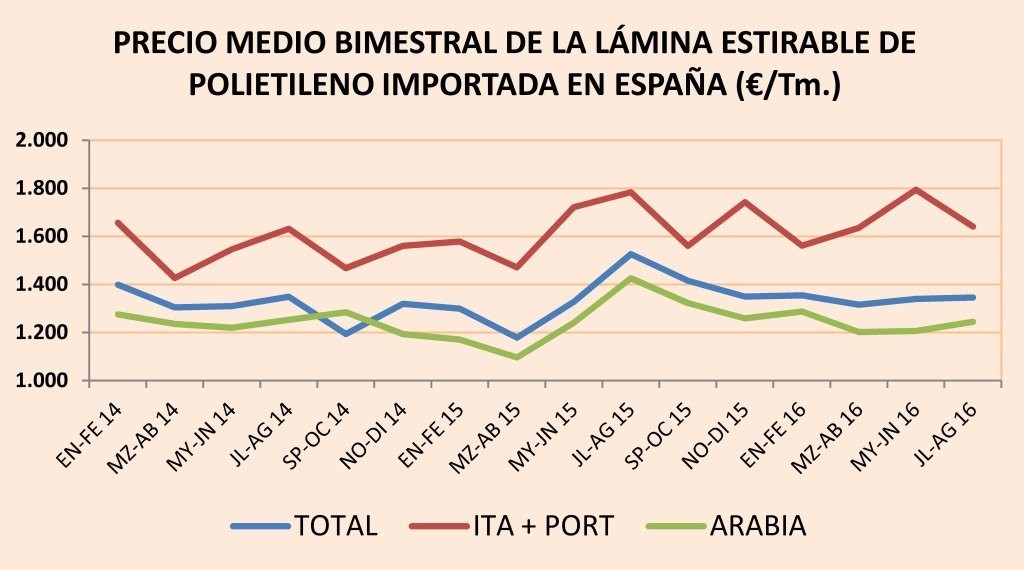 Lunes, 24 de octubre de 2016 | Las importaciones españolas de film estirable de polietileno procedentes de Arabia Saudí, que han llegado a suponer más de la mitad de toda este semielaborado que llega ...