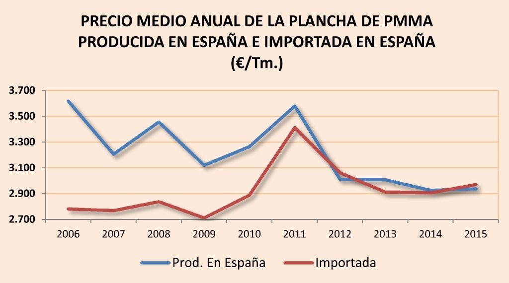 El mercado español de planchas de polimetacrilato de metilo mejoró notablemente en 2015