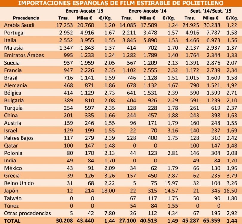 Arabia Saudí impulsa las importaciones españolas de film estirable de polietileno