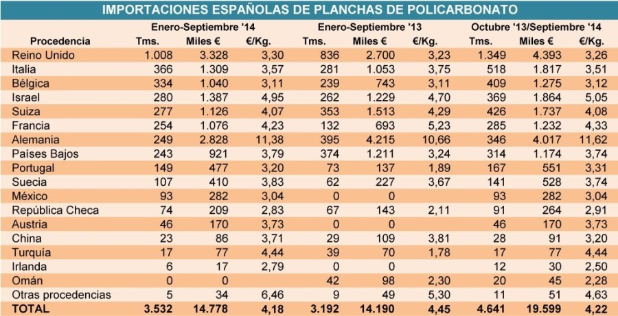 Lunes, 8 de diciembre de 2014 | Las importaciones españolas de planchas de policarbonato crecían al finalizar el pasado mes de septiembre a un ritmo anual del 12,9%, impulsadas por una reducción de ...