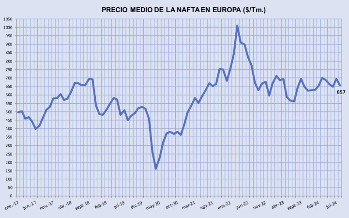 Martes, 10 septiembre 2024 Empujado por el fuerte descenso del precio del petróleo, la cotización de la nafta en Europa se dirige a perder la cota de...