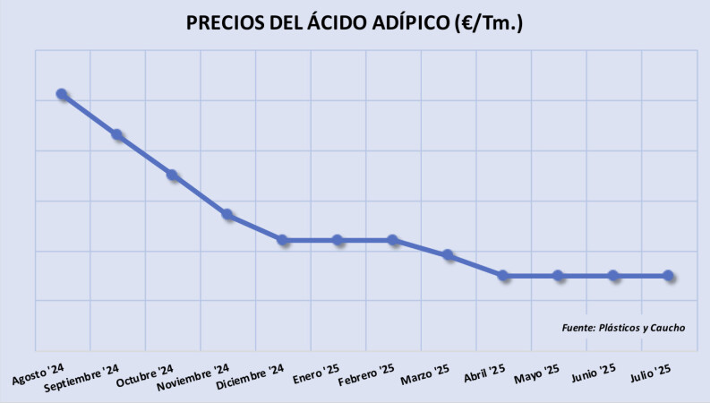 Martes, 15 julio 2025 Los proveedores europeos de ácido adípico (AA), han logrado contener la prolongada caída de precios del último año y durante los meses de mayo, junio y julio se han mantenido estables