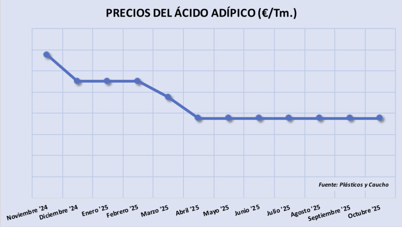 Jueves, 6 noviembre 2025 El precio del ácido adípico (AA) se mantuvo estable en Europa durante septiembre y octubre pasados, a pesar de