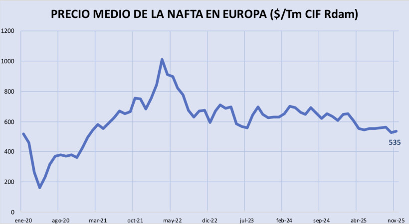 Lunes, 9 diciembre 2024 Como se veía venir, el precio de la nafta perdió el umbral de los 600 $/Tm en la primera semana de diciembre, situándose en...