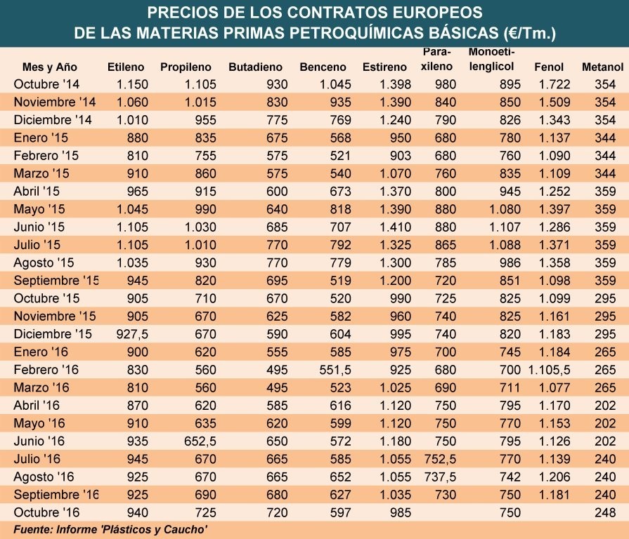 Lunes, 31 de octubre de 2016 | Tras mantenerse desde principios de octubre el precio de la nafta en niveles máximos de este año, los precios de los contratos europeos del etileno y propileno de ...