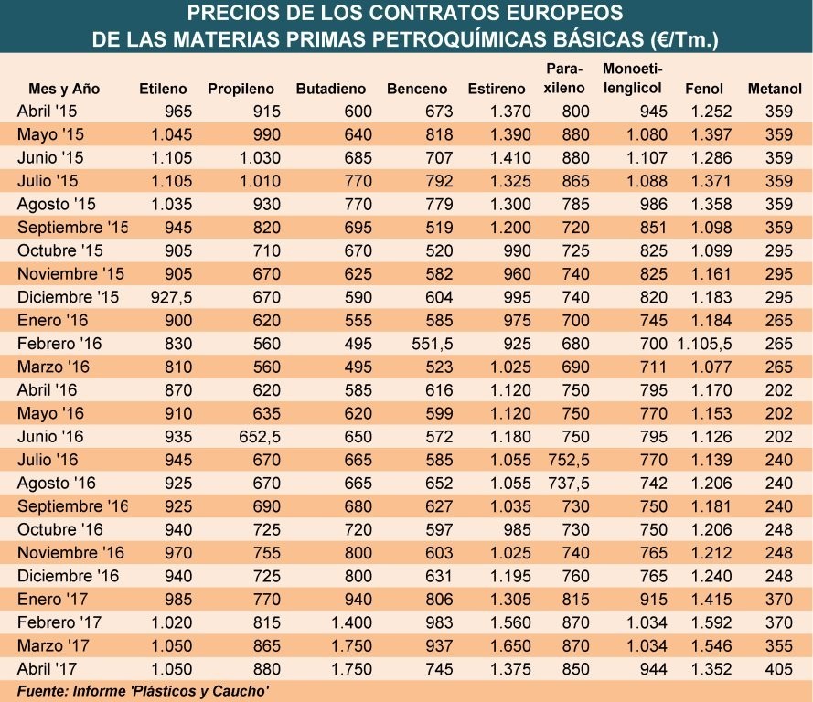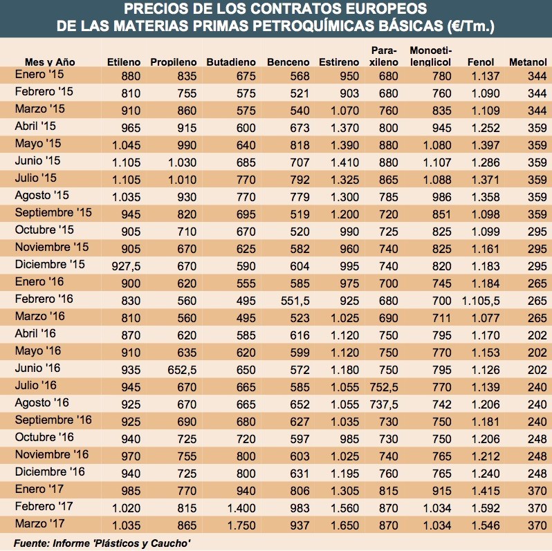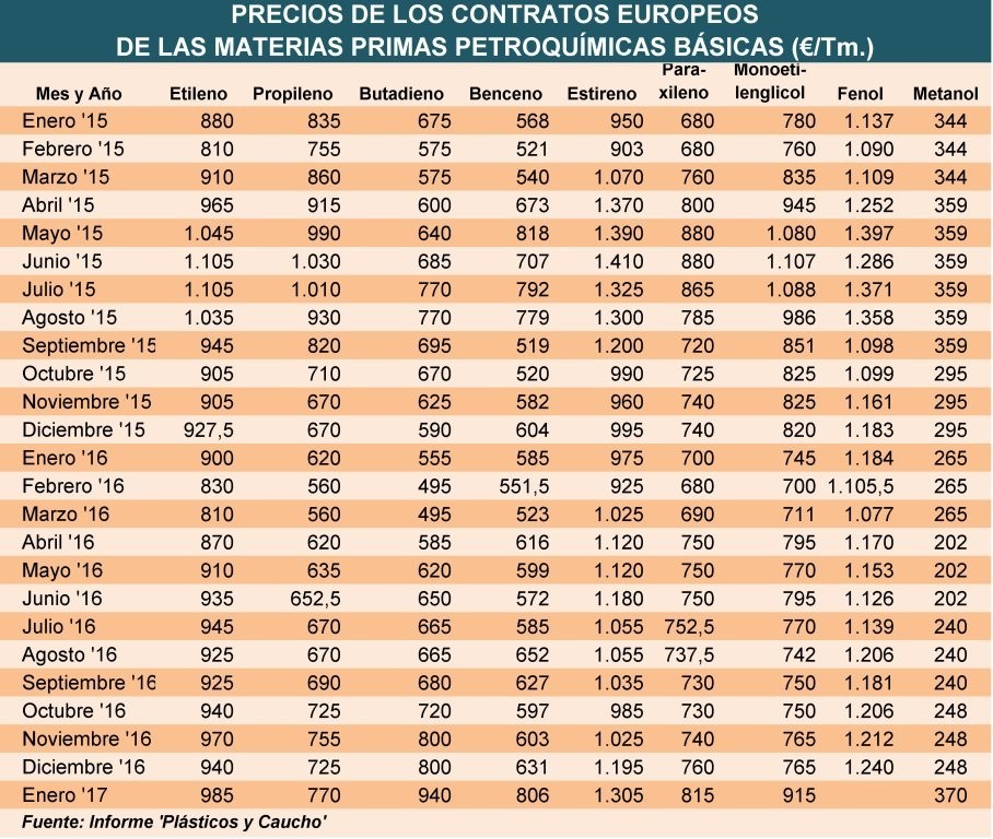 Lunes, 17 de abril de 2017 | Los precios de los contratos europeos del propileno y metanol han sido los únicos, de las materias primas petroquímicas utilizadas en la producción de termoplásticos, que ...