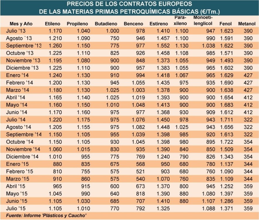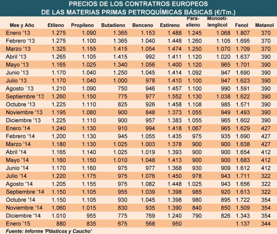 Lunes, 9 de marzo de 2015 | Las materias petroquímicas básicas para producir polímeros cuestan en Europa este mes entre 100 y 175 €/Tm. más que en febrero, como consecuencia del repunte del precio ...