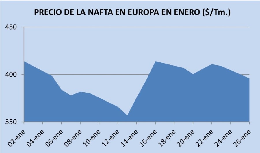Martes, 27 de enero de 2015 | El precio de la nafta se ha recuperado ligeramente en Europa durante la penúltima semana de enero, si bien al comenzar la última del mes fue de 396 $/Tm. CIF Rotterdam. ...
