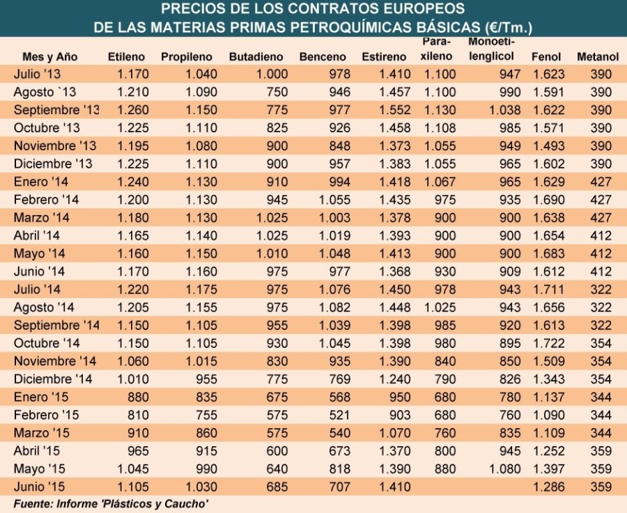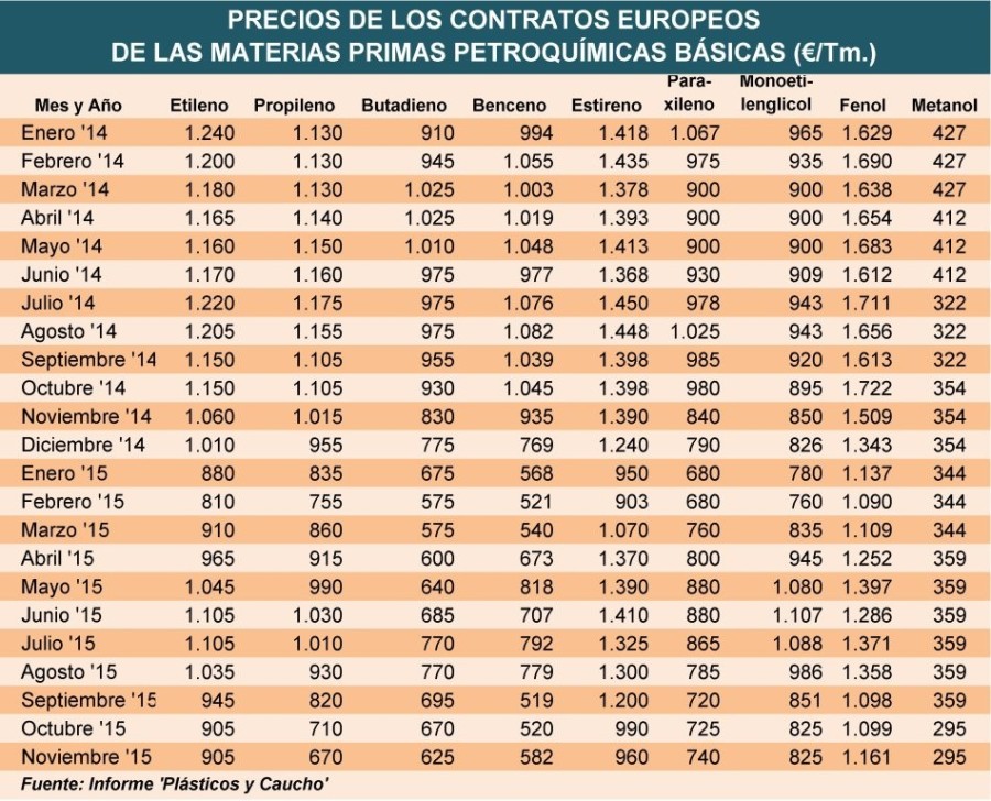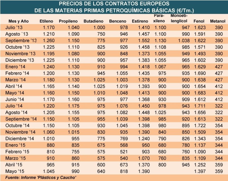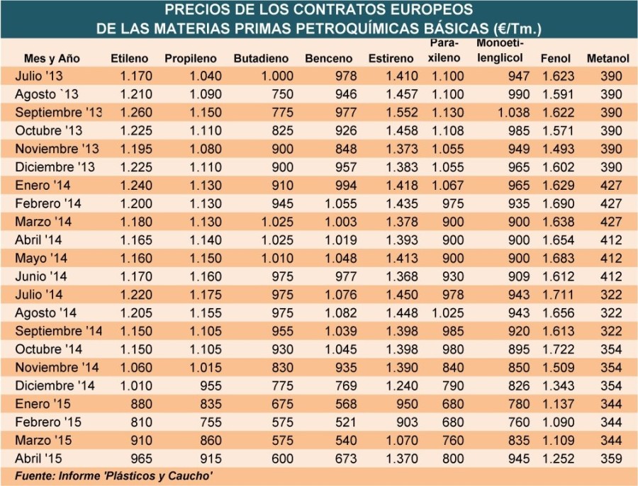 Lunes, 20 de abril de 2015 |  Los precios de los productos petroquímicos básicos utilizados en la fabricación de polímeros han aumentado significativamente, aunque de manera dispar, en Europa en ...