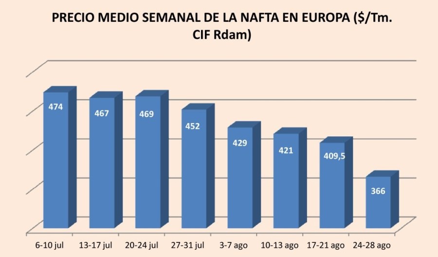 Miércoles, 2 de septiembre de 2015 | El precio de la nafta se ha desmoronado. La cotización media de la materia prima petroquímica en Europa durante agosto pasado cayó un 14%, respecto al mes anterior, ...