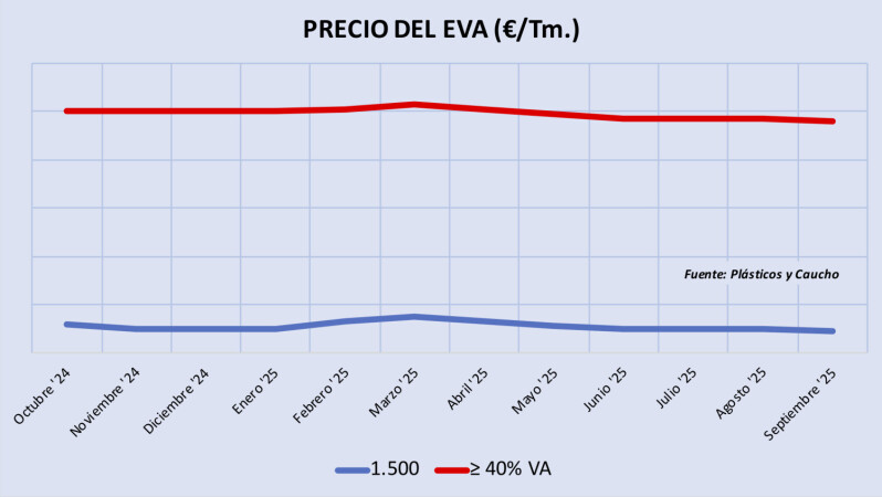Sábado, 20 septiembre 2025 Tras un periodo de estabilidad durante los meses de verano, el precio del copolímero de etileno y acetato de vinilo (EVA) ha comenzado a bajar en septiembre