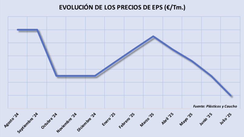 Viernes, 18 julio 2025 La demanda de poliestireno expandido (EPS) se ha moderado en julio, respecto a los meses precedentes, y los vendedores han seguido bajando los precios por cuarto mes consecutivo