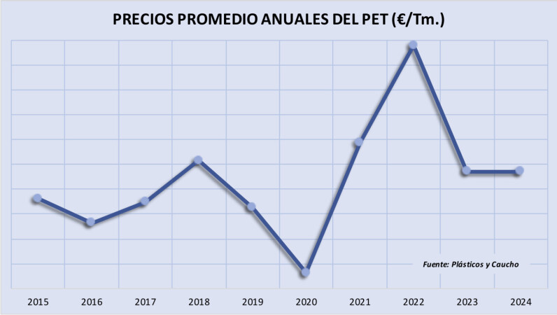 El precio promedio del PET en el conjunto de 2024 permaneció invariable, con respecto al de 2023 ...