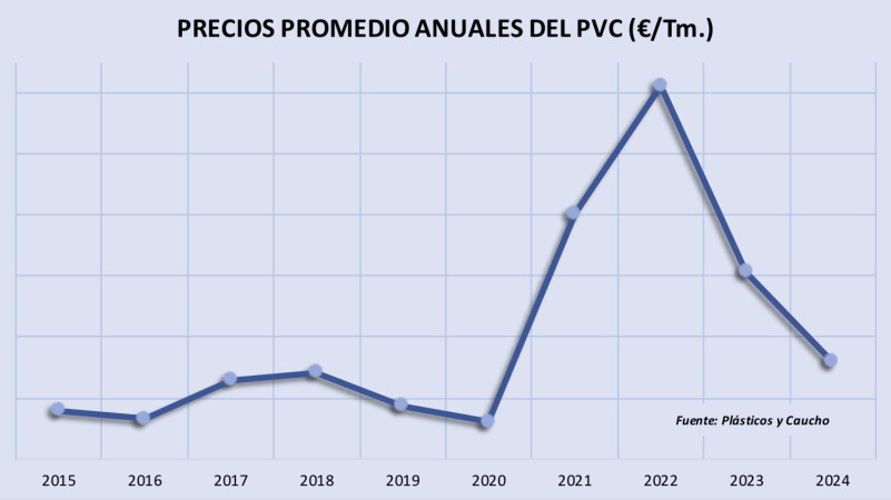 El precio medio del PVC en 2024 fue un 22 % más bajo que en 2023