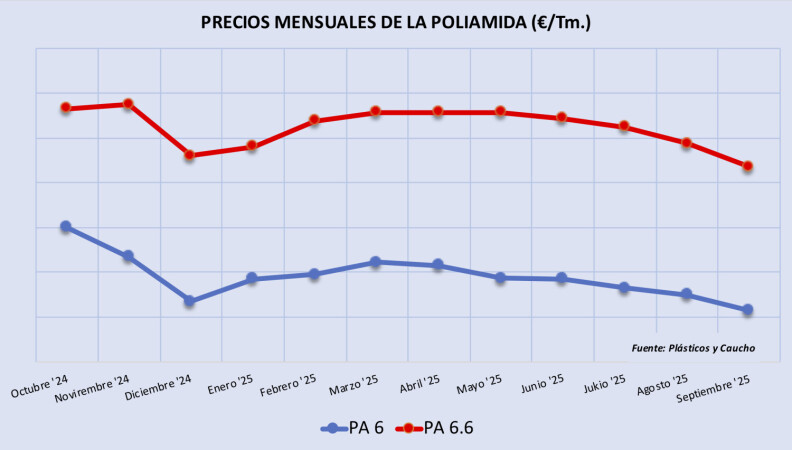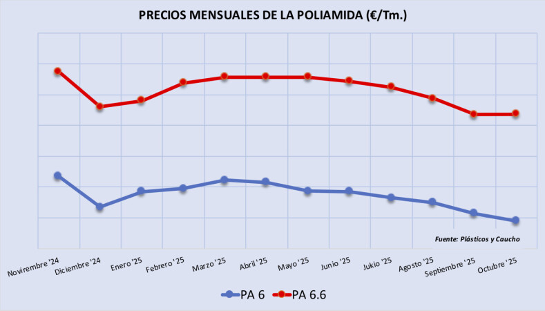 Sábado, 29 noviembre 2025 Al igual que en septiembre, mes en el que, pese a una ligera reactivación por parte de algunos proveedores de poliamida 6 y 6.6 (PA 6 y PA 6.6), en octubre la demanda general se mantuvo