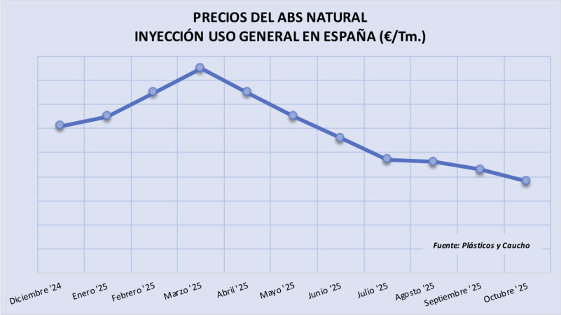 Sábado, 6 diciembre 2025 La evolución descendente de los precios de acrilonitrilo-butadieno-estireno (ABS) se contuvo parcialmente en noviembre, cuando se estima que los precios tocaron fondo tras situarse en