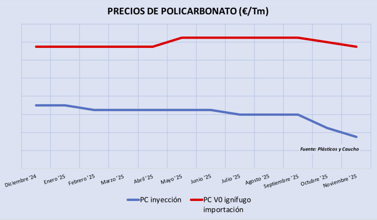 Viernes, 28 noviembre 2025 Durante el último trimestre del año, los precios del policarbonato para inyección en Europa han descendido con fuerza, registrando en algunos casos bajadas de entre