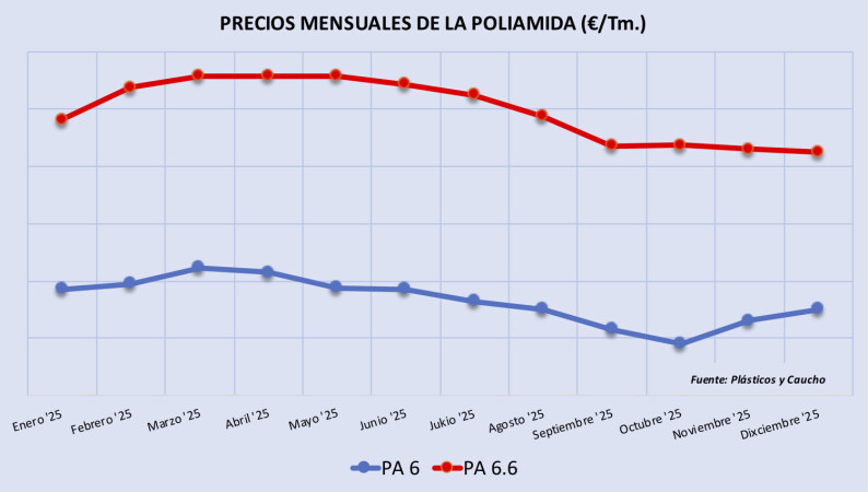 Los precios de las poliamidas 6 y 6.6 variaron de manera dispar en los dos últimos meses de 2025 ...