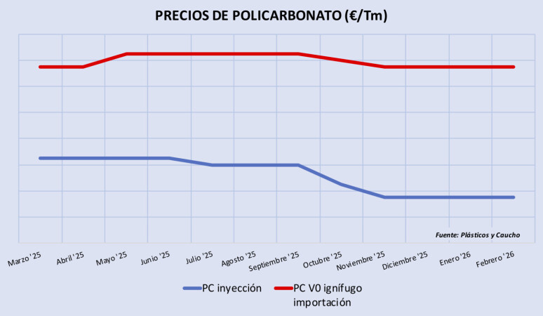 Viernes, 20 febrero 2026 El mercado del policarbonato (PC) para inyección atraviesa una fase de clara debilidad, tras las fuertes bajadas de precios