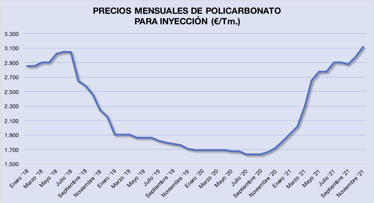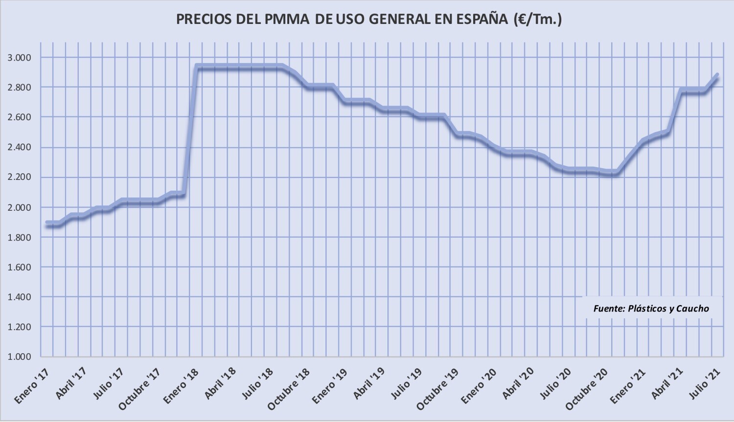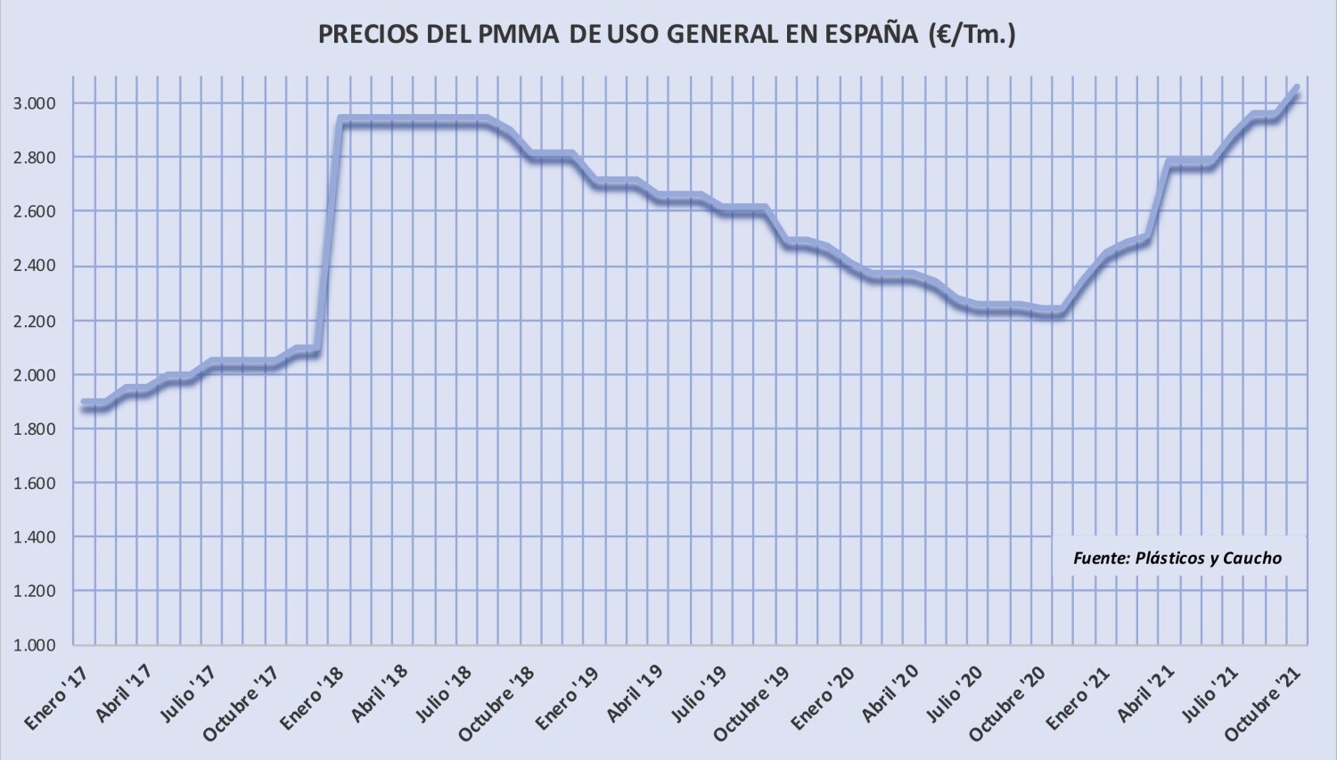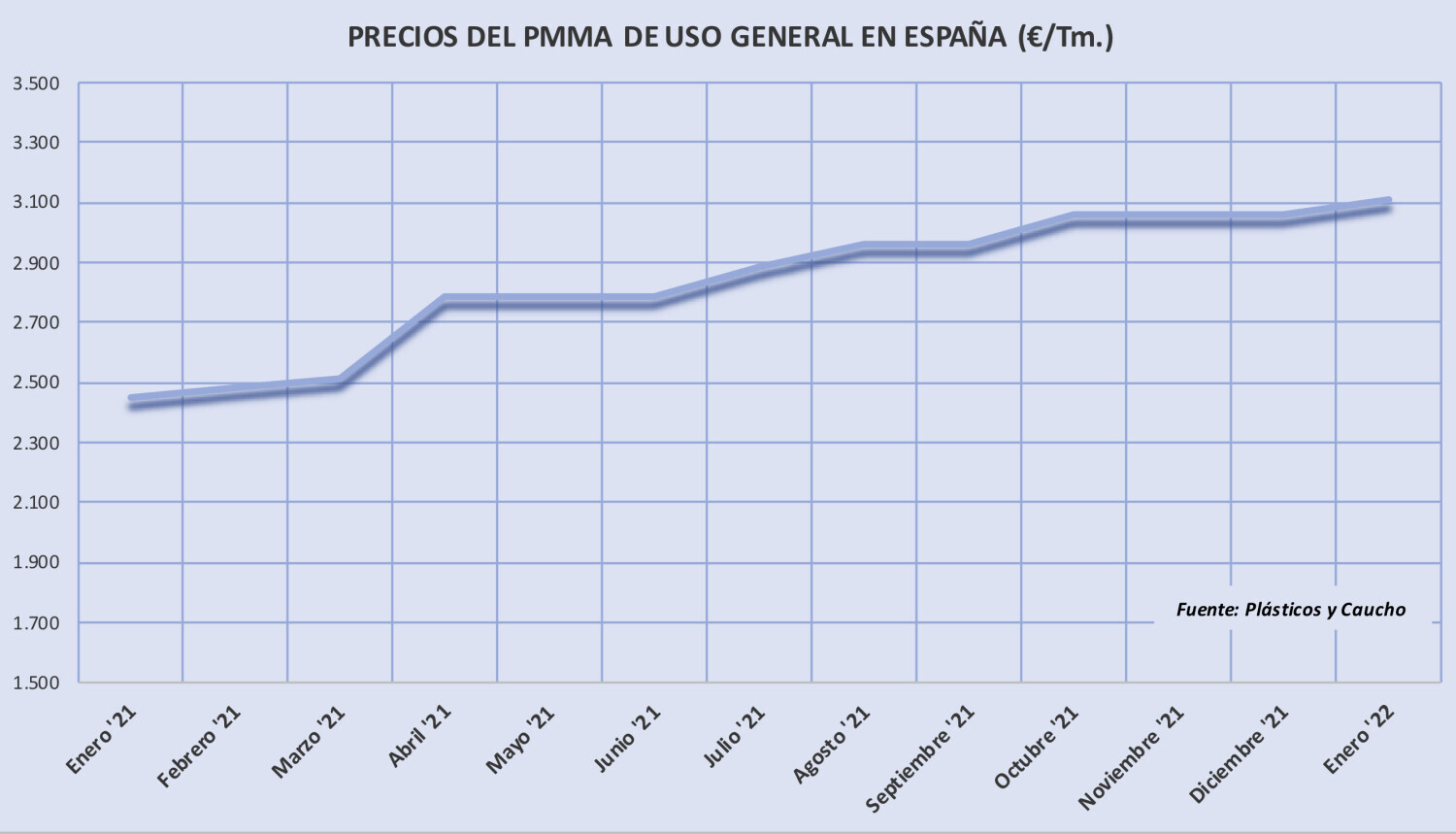 Lunes, 24 de enero de 2022 | Después de permanecer invariables en los dos últimos meses de 2021, los precios del polimetacrilato de metilo aumentan 50 €/Tm. en el primer trimestre de 2022, con ...