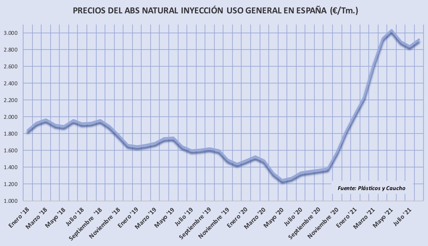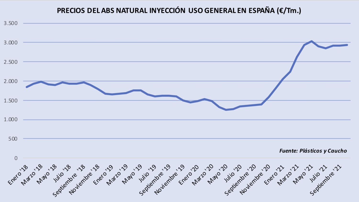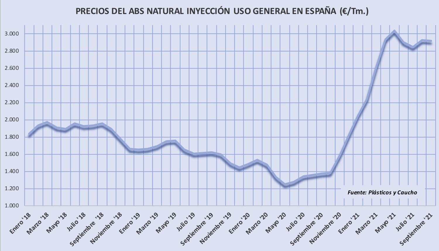 Miércoles, 22 de septiembre de 2021 | Tras una subida en agosto algo más moderada de la esperada por algunos, los precios del acrilonitrilo-butadieno-estireno (ABS) se mantienen estables en septiembre y ...