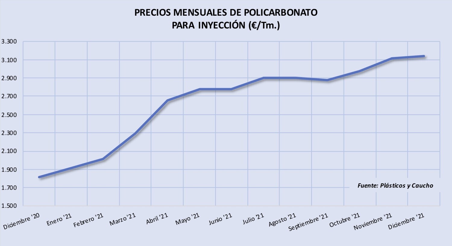Lunes, 17 de enero de 2022 | Empujados por el encarecimiento de 209 €/Tm. del contrato europeo del benceno en enero y por los altos costes de la energía, los precios del policarbonato tienden a seguir ...