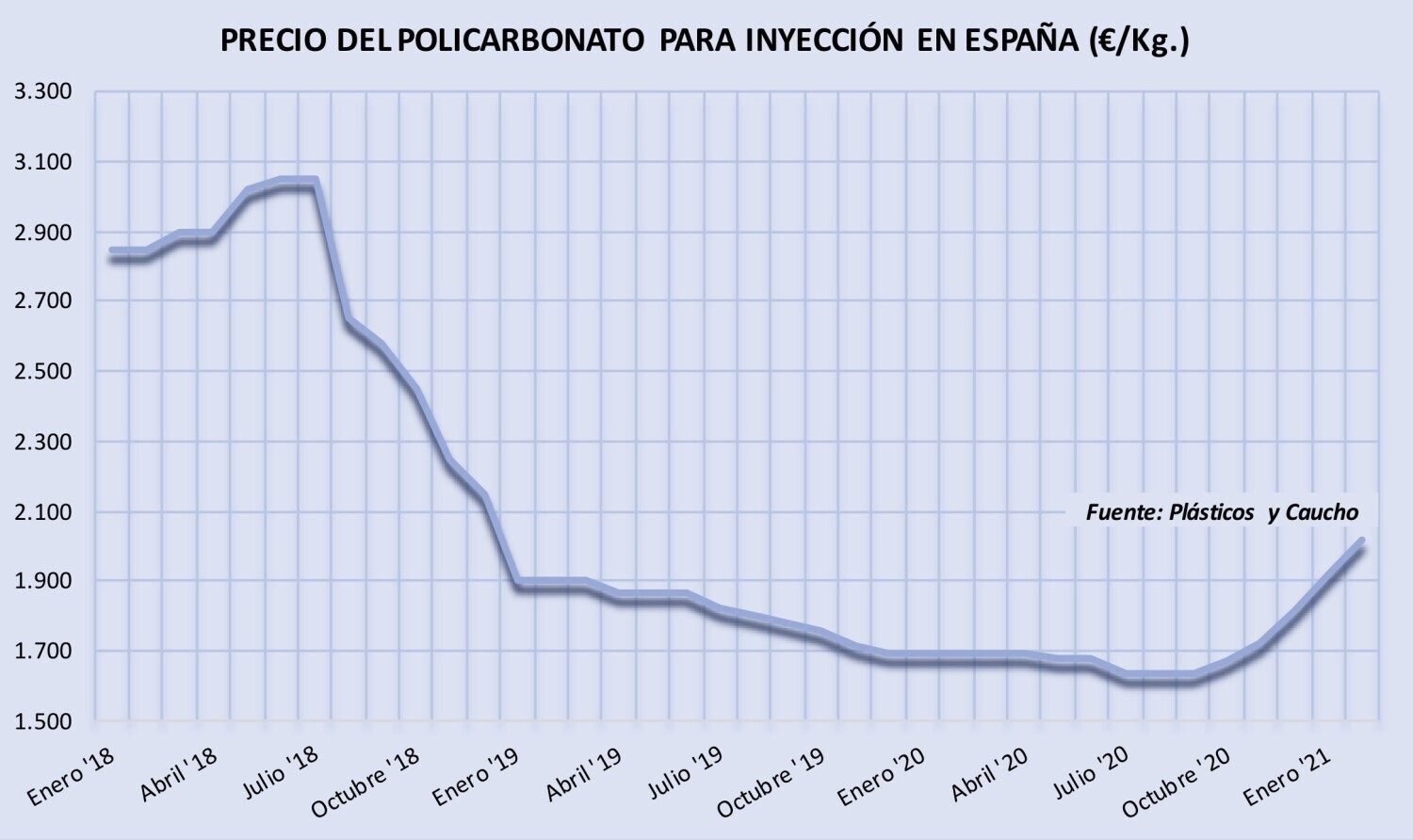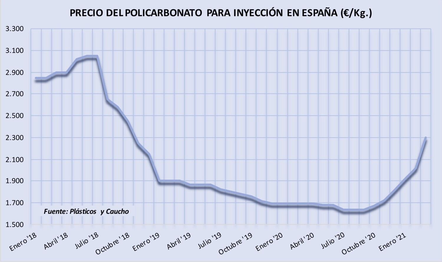 Lunes, 15 de marzo de 2021 | La fortísima subida en marzo de hasta 600 €/Tm. del precio del policarbonato propuesta por TRINSEO refleja la extrema escasez de este polímero técnico en toda Europa. ...