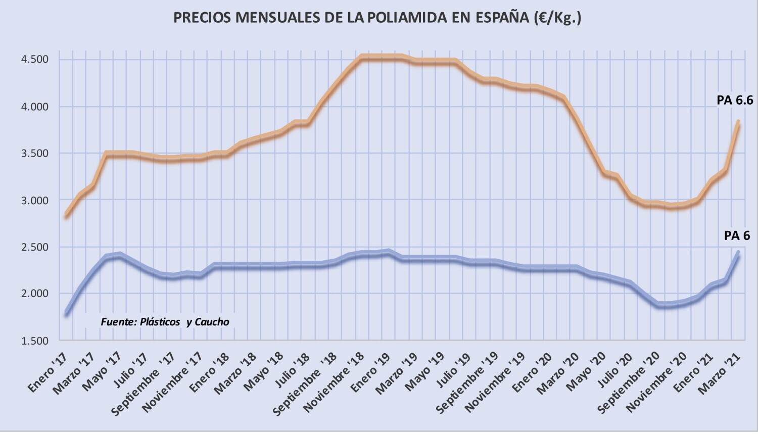 Los precios de las poliamidas 6 y 6.6 volvieron a fortalecerse en abril en medio de una feroz ...