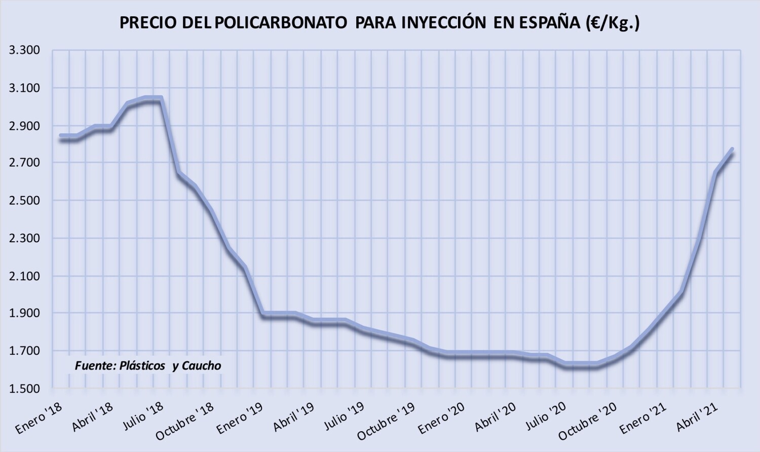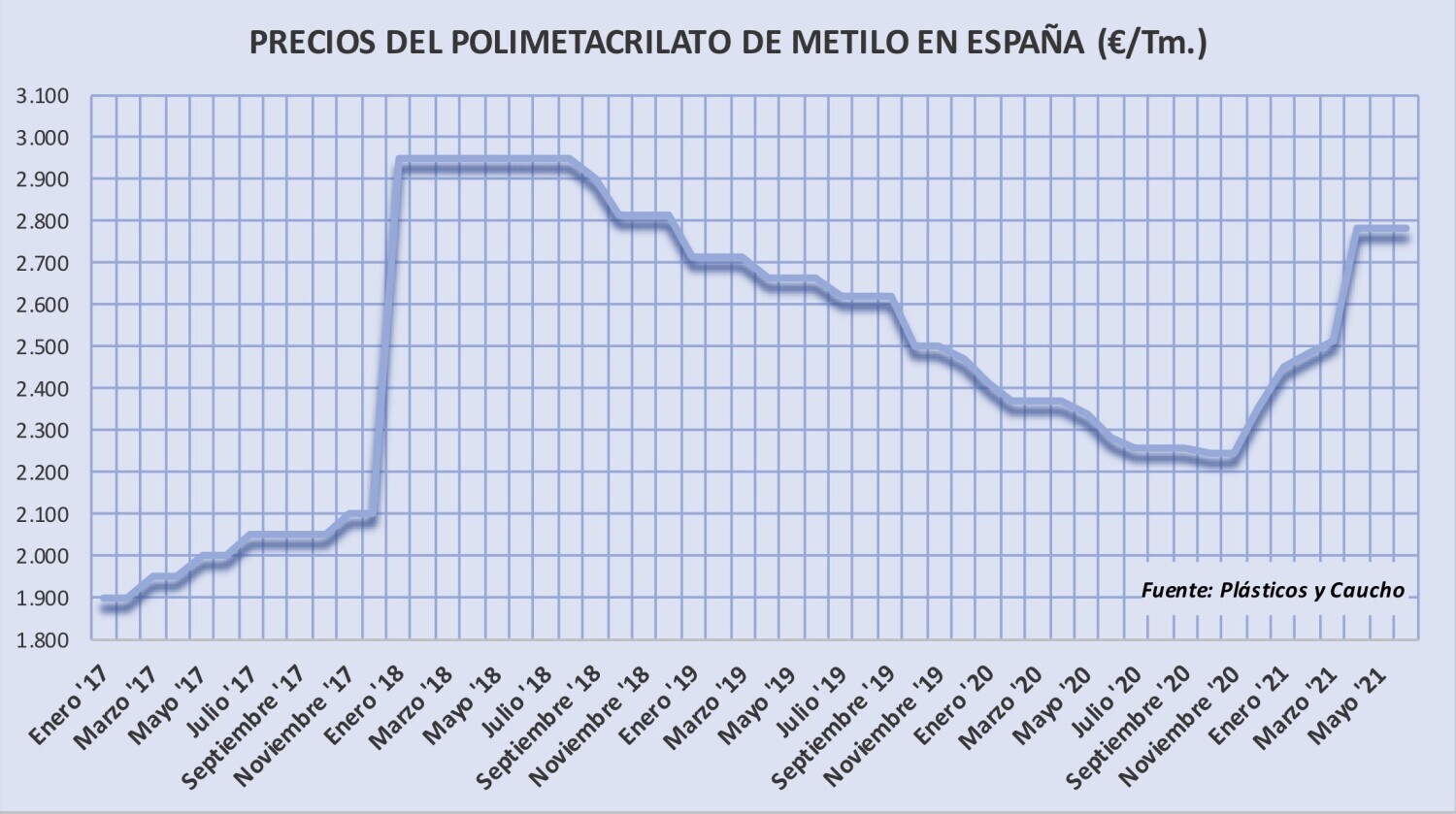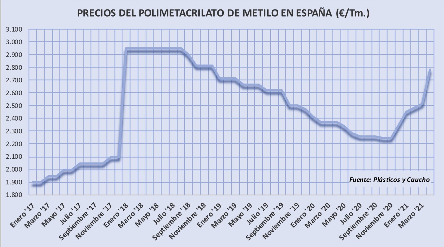 Lunes, 26 de abril de 2021 | Tal y como se esperaba los precios del polimetacrilato de metilo -PMMA- han aumentado 300 €/Tm. en abril y se espera que en el segundo trimestre del año se sitúen ...