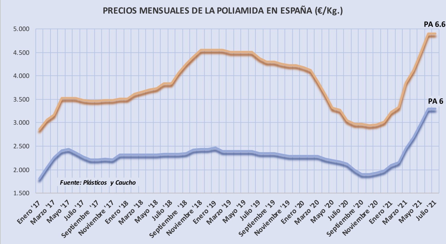 Las tarifas de las poliamidas 6 y 6.6 siguieron subiendo en junio y la demanda se mantivo con ...
