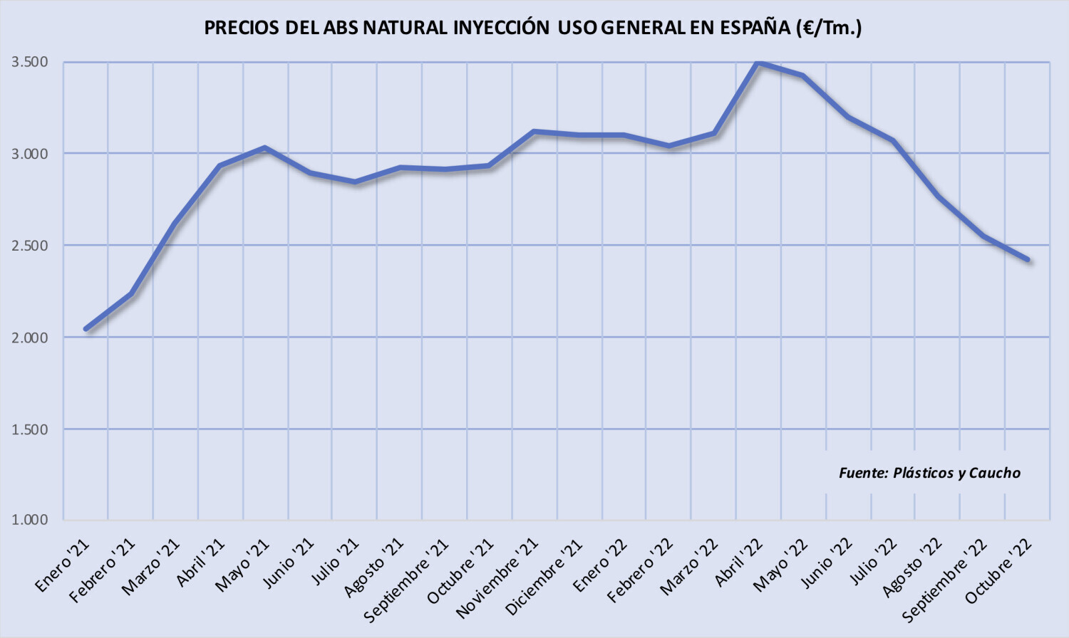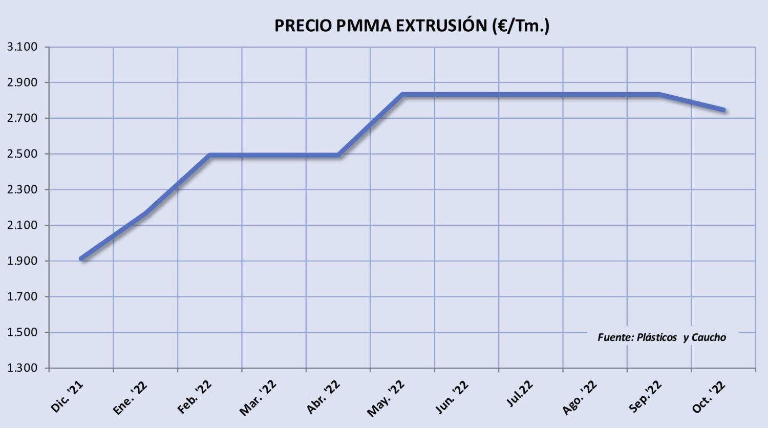 Miércoles, 9 de noviembre de 2022 | Tras cuatro meses consecutivos de estabilidad, el precio del polimetacrilato de metilo (PMMA) descendió ligeramente en España durante octubre. En concreto, este ...