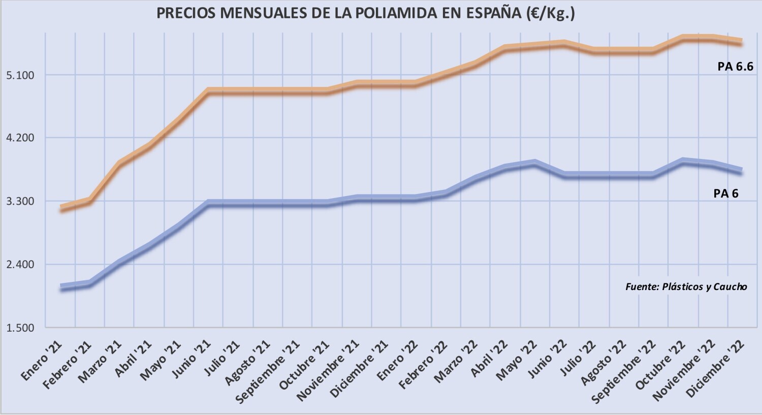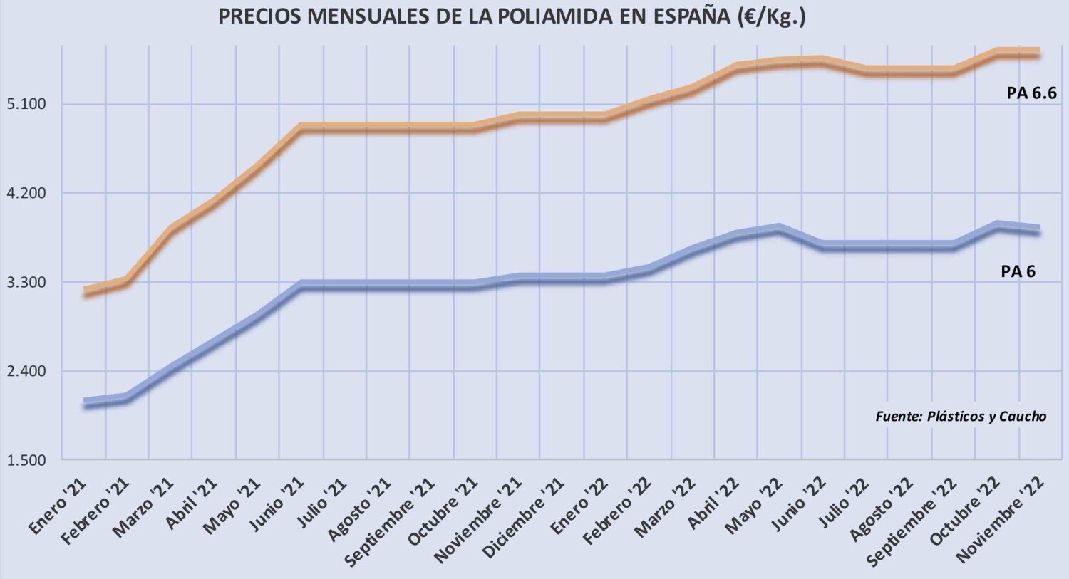 Miércoles, 23 de noviembre de 2022 | Tras el aumento producido en octubre, los precios de la poliamida 6.6 se han mantenido invariables en noviembre y los de la poliamida 6, a grandes rasgos, tampoco han ...