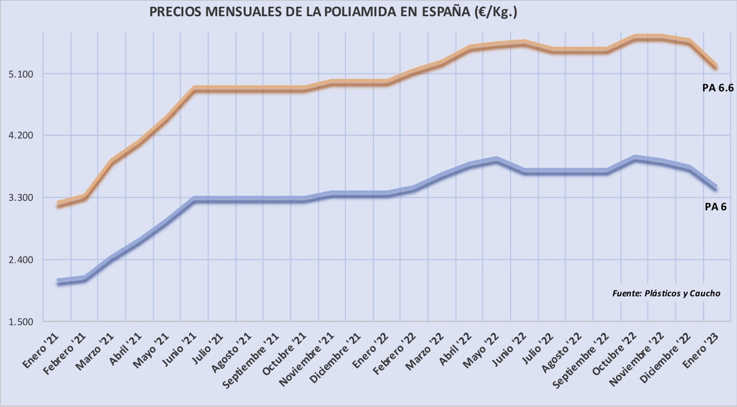 Miércoles, 25 de enero de 2023 | Las tarifas de la poliamida 6 y 6.6 han bajado en el primer mes del año, y lo han hecho más fuertemente que en diciembre, al caer entre 250-350 €/Tm. con respecto al ...